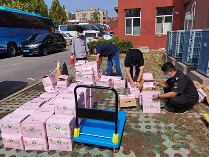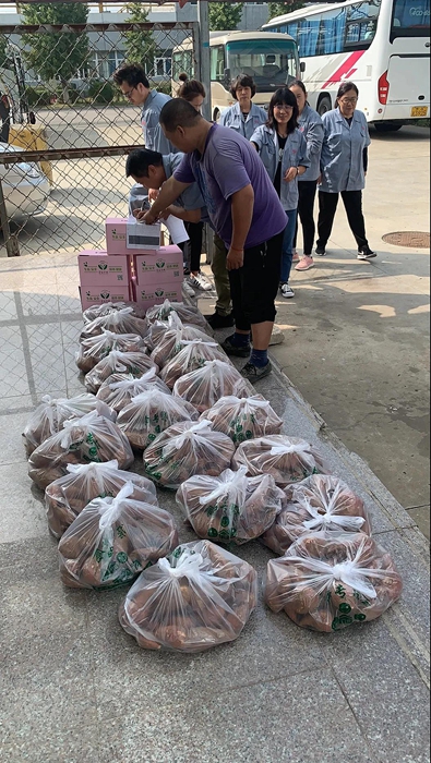 北化集团工会向所属二级单位积极推荐沙峪沟村特产——农科院主推的无公害、高甜度的西瓜红红薯,以及当地经济作物——板栗。“消费广告”的推出,立刻引来“围观”,各二级单位纷纷响应,9月17日至21日短短5天时间里,集团所属22家二级单位陆续下单订货。9月25日,第一批红薯和板栗送到了职防院、化研院和华腾新材料干部职工手中。在随后的几天里,王唯良与村民们一起起早贪黑,刨红薯、摘板栗,称重、装盒。一趟一趟地往返于北化集团各二级企业与沙峪沟村之间,将新农村建设的成果和一份份朴实村民的祝福送到干部职工手中。