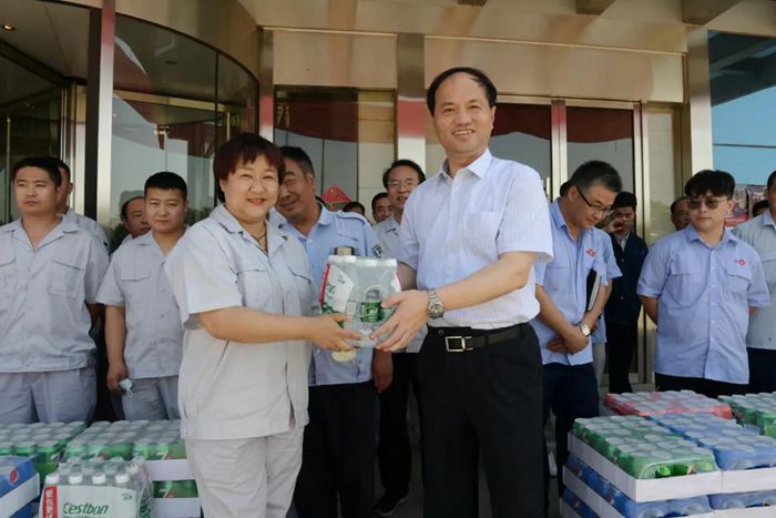 炎炎夏日、“清凉”入心。近日,随着气温的不断飙升,受BBIN·宝盈市总工会委托,集团党委书记、董事长王国华,集团党委副书记、总经理陈宇分别带队来到大兴化工园区、华腾橡塑、职防院,化研院、华腾新材料、华腾拓展亲切慰问奋战在生产经营一线的干部职工。
