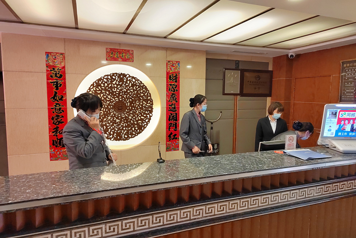 入住当天,为快速办理相关手续,宾馆管理人员来到接待一线,确保选房、做卡、核验身份证一气呵成,高效和优质的服务赢得了记者的赞许。党员和积极分子在完成好本职工作的同时,主动到门口接待入住记者,为他们提行李、领路,让他们享受到了一站式到达的服务。