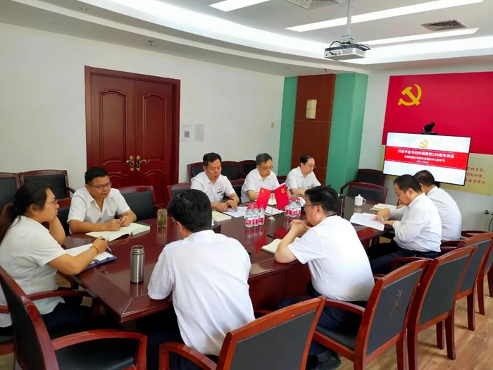 7月6日,华腾拓展公司党总支理论学习中心组集中学习习近平总书记在庆祝中国共产党成立100周年大会上的重要讲话精神,传达落实BBIN·宝盈化工集团党委书记、董事长王国华提出的有关学习要求。