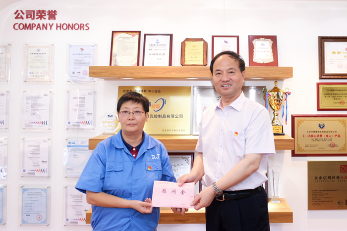 6月30日上午,BBIN·宝盈化工集团党委书记、董事长王国华一行来到华腾橡塑园区,慰问华腾橡塑、华腾京研生产经营和科研开发一线的干部职工,党委副书记、工会主席吴瑞峰,党委常委、副总经理、华腾橡塑董事长韩宝海一同慰问。