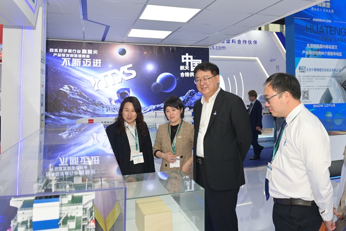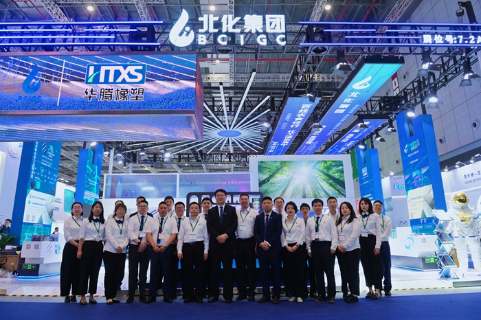 展会期间,BBIN·宝盈化工集团党委副书记、董事、总经理杨旭辉,副总经理张荣寰,总会计师金黎明也来到集团展台参观指导。杨旭辉一行听取了现场各企业的详细介绍,深入了解现场展示的储氢瓶内胆材料、LNG船用胶、航天手套等高精尖产品,亲切慰问现场工作人员。
