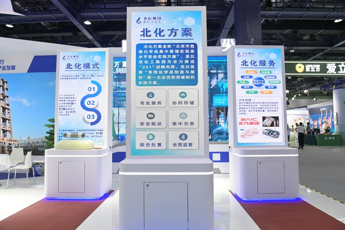 突出展现集团发挥主责主业优势,围绕首都“四个中心”功能建设,积极融入“五子”联动新格局取得的丰硕成果,是BBIN·宝盈化工集团此次参展的一大亮点。“三个北化”——“北化方案”“北化模式”“北化服务”展屏矗立其间,构筑安全管理全产业体系、发展生物医药大健康产业、服务首都产业链安全,成为集团全新战略方向和目标。