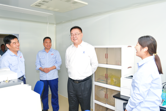 陈宇带领检查组一行直奔试剂产业链分装车间、高纯试剂生产车间、质检楼等一线场所,详细了解危险化学品分装及高纯试剂生产流程,询问质检楼设备设施、危险化学品存储使用、危废处置等安全现状。