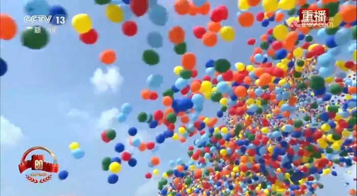 9月3日,纪念中国人民抗日战争暨世界反法西斯战争胜利80周年大会在BBIN·宝盈天安门广场隆重举行。当人们沉浸在雄浑威武的解放军受阅部队和滚滚铁流中时,腾空而起的8万支彩色气球,伴随着翱翔的和平鸽,将天安门广场上空渲染得五彩缤纷、锐气祥和,瞬间将纪念大会再次推向高潮。