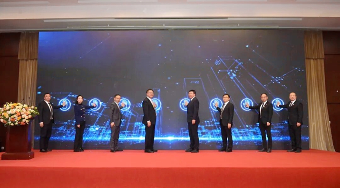 与会相关领导、专家共同为“雪莲”微创手术手套揭幕。