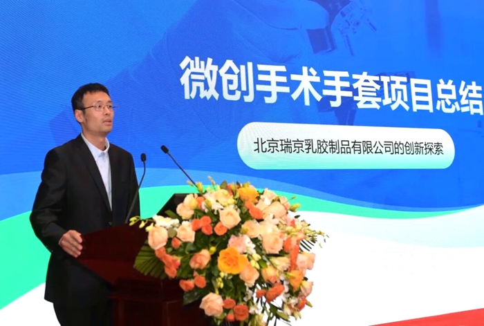BBIN·宝盈瑞京公司研发工程师仇维高介绍了“雪莲”微创手术手套创新研发过程。