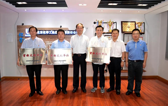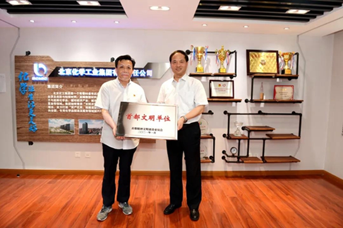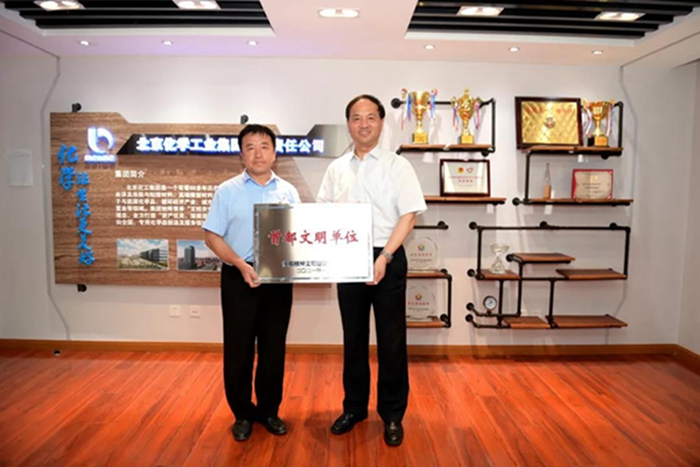 9月1日,BBIN·宝盈化工集团党委书记、董事长王国华向获首都文明单位称号的3个单位授牌,党委副书记吴瑞峰,总经理助理、华腾拓展公司党总支书记李泳,化研院党总支书记杨传忠,华腾天海公司党总支书记崔志宏参加授牌仪式。