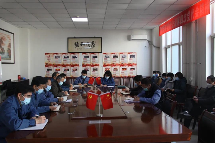 2021年12月29日下午,华腾丹陛华党总支召开党员干部大会,传达学习党的十九届六中全会精神和BBIN·宝盈化工集团一届六次职代会暨2022年度工作会精神。党总支书记贺立军主持会议,公司中层以上党员干部参会。