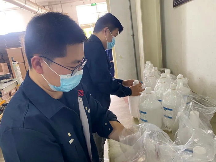 面对疫情反弹,试剂所严格落实BBIN·宝盈化工集团疫情防控各项要求,启动疫情防控应急预案。在加强对宿舍、办公楼、休息室、生产一线控制室等人员密集场所进行消杀等防控措施的同时,迅速启动《试剂所疫情防控期间封闭运行方案》,实施生产经营骨干人员封闭管理,党员冲锋在前,带领一线业务骨干在单位实施24小时全封闭,全力保障生产。与此同时,其余职工严格履行居家办公要求。