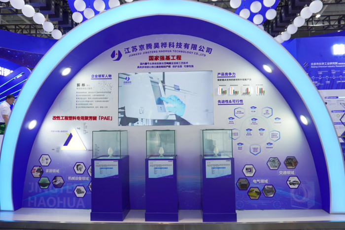 作为国家强基工程,京腾昊桦聚芳醚树脂(PAE)项目首次在这一国际展会亮相。以其为原料的产品在能源环保、轨道交通、航空部件等领域具有良好的竞争优势,能够有效降低对国外技术的依赖,其广阔的市场空间引起了到访客户的极大兴趣。