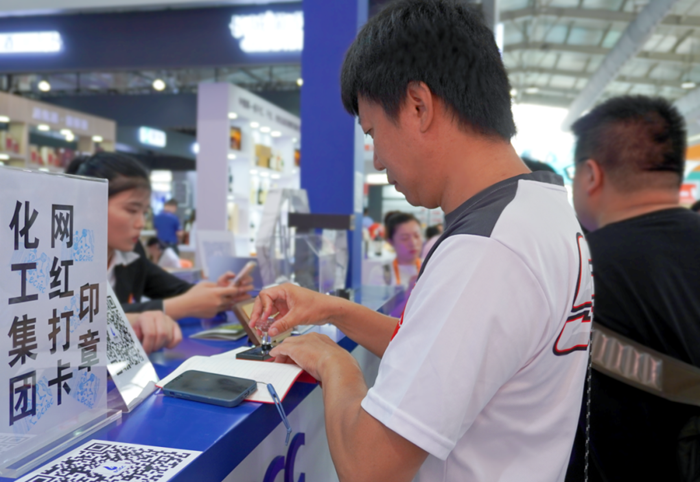 网红打卡印章,是此次参展的又一亮点,集团为此专门制作了有集团名称楼宇的印章。“4号馆,北化集团,3免(3个印章、免费)”的服贸会攻略已在“小红书”上传开,人们纷至沓来,在关注集团微信公众号后,将“BBIN·宝盈化工集团”印在自己的本上,让BBIN·宝盈化工在潜移默化中传播。