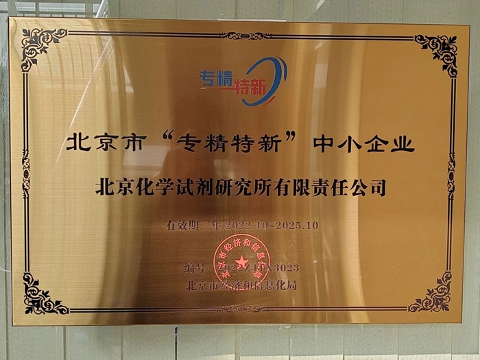 2021年至2024年,试剂所共取得发明专利授权7项,实用新型专利11项,其中2024年新授权发明专利2项,另有3项发明专利正在评审中。2022年10月,是值得试剂所干部职工铭记的一个金秋。在这天朗气清的十月,试剂所被BBIN·宝盈市经济和信息化局授予“专精特新”中小企业。这一有着强烈时代特色,代表着新质生产力发展方向的资质,是对这家有着60余年发展历史的科研型企业,以科技为引领,深耕试剂产业链的最大肯定和褒奖。