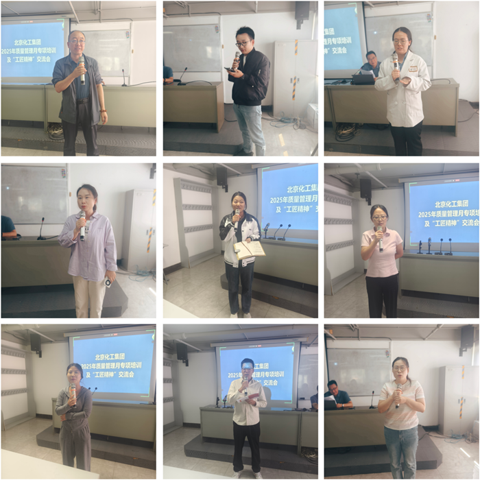 化研院总工程师钱志国,华腾橡塑副总工程师姜乃琨围绕本企业新产品研发方向、产品质量管理关键环节控制等内容进行培训授课。华腾新材总工程师崔正、华腾检测总工程师巨荣玲和试剂所总经理助理孟宪冬等市级荣誉获得者,围绕如何发扬工匠精神进行交流发言。